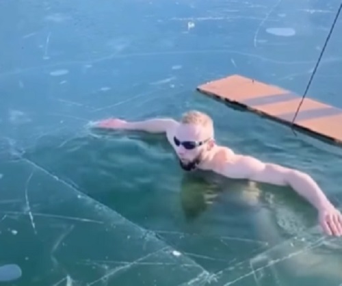 Durante el desafío, nadó en un curso previamente marcado, pero terminó desorientándose y emergiendo en un punto donde el hielo era más grueso.